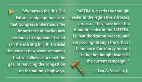 Mr. Vecellio’s top legislative goal for ARTBA is to continue pressing Congress for a significant increase in federal highway/transit investment as part of the reauthorization of the Safe, Accountable, Flexible, Efficient Transportation Equity Act: A Legacy for Users (SAFETEA-LU), which is due by October 1, 2009. ARTBA has launched an “inside the Washington beltway” public affairs and communications campaign to help achieve this goal, Vecellio said.